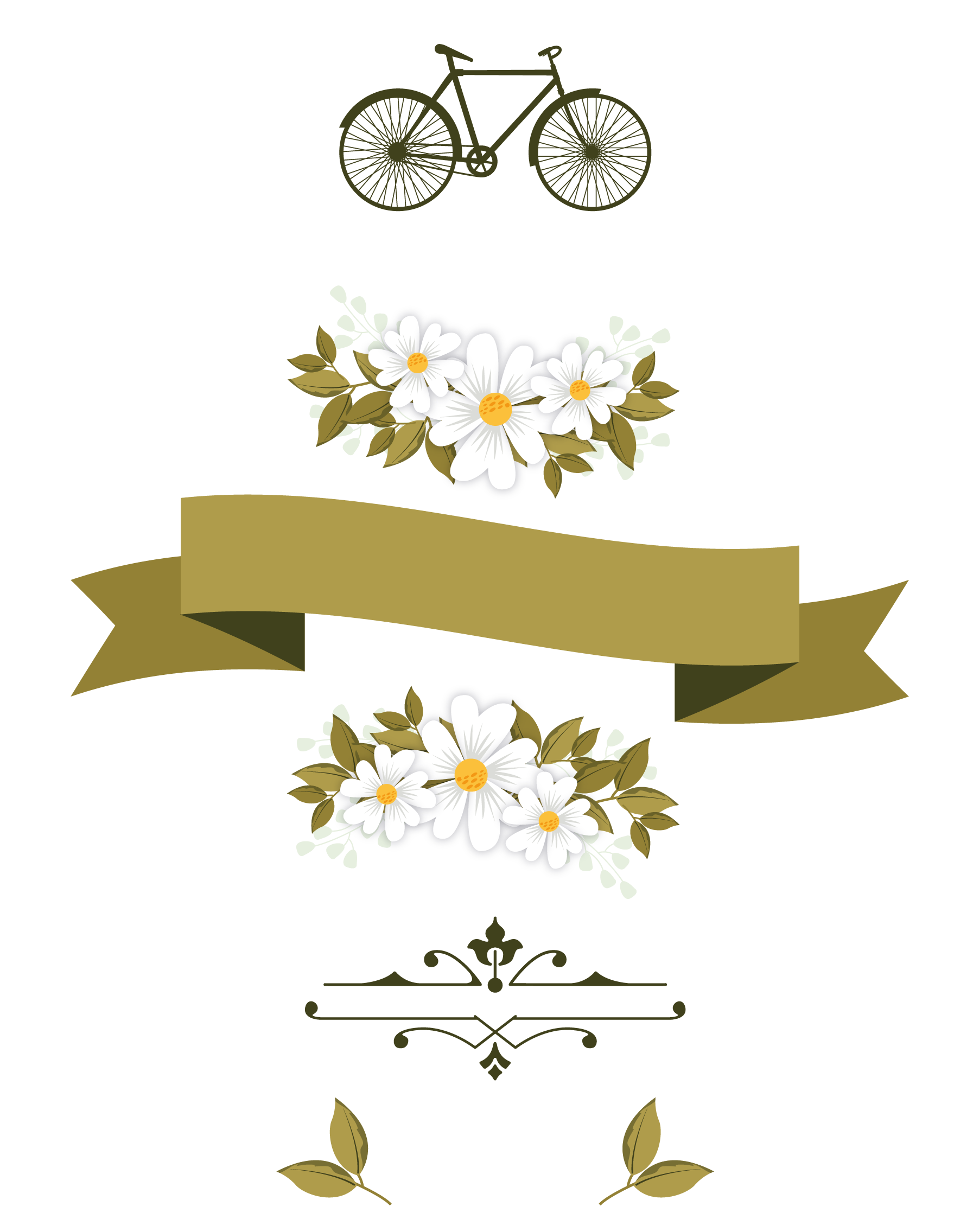 Black bicycle illustration, Euclidean Flower Adobe Illustrator, floral ribbon, border, watercolor Painting, ribbon png