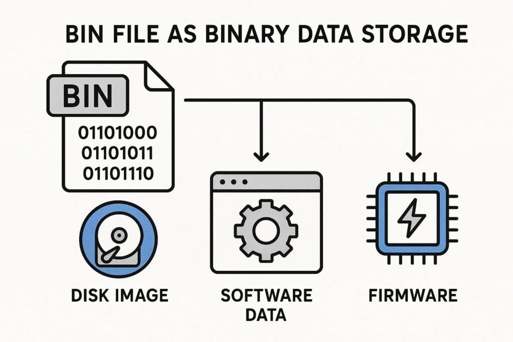 A BIN file (Binary file) is a generic container that stores data in binary format. Unlike JPG, PDF, or MP4 files, a BIN file does not tell your system what kind of data it contains just by its extension.